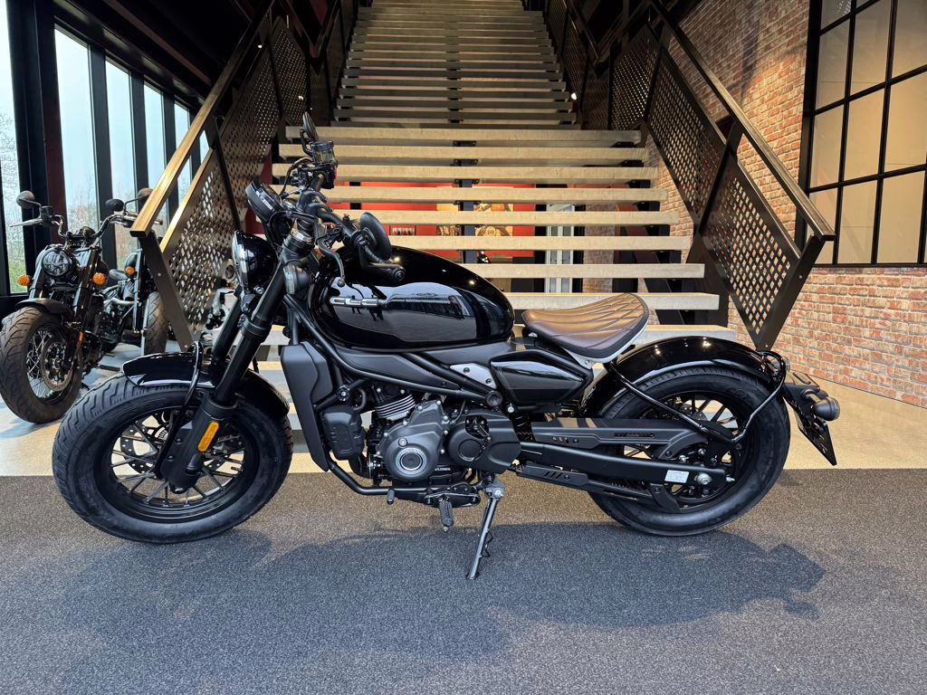 CFMOTO 450CLC Bobber combineert klassiek bobber-design met moderne techniek en hoogwaardige afwerking. Het lage silhouet, de minimalistische lijnen en de brede banden geven de motor een stoere en zelfverzekerde uitstraling. Met een zithoogte van slechts 690 mm is de motor bovendien toegankelijk voor een brede groep rijders.